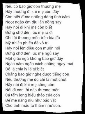 Hãy nói đi khi mẹ sống còn.